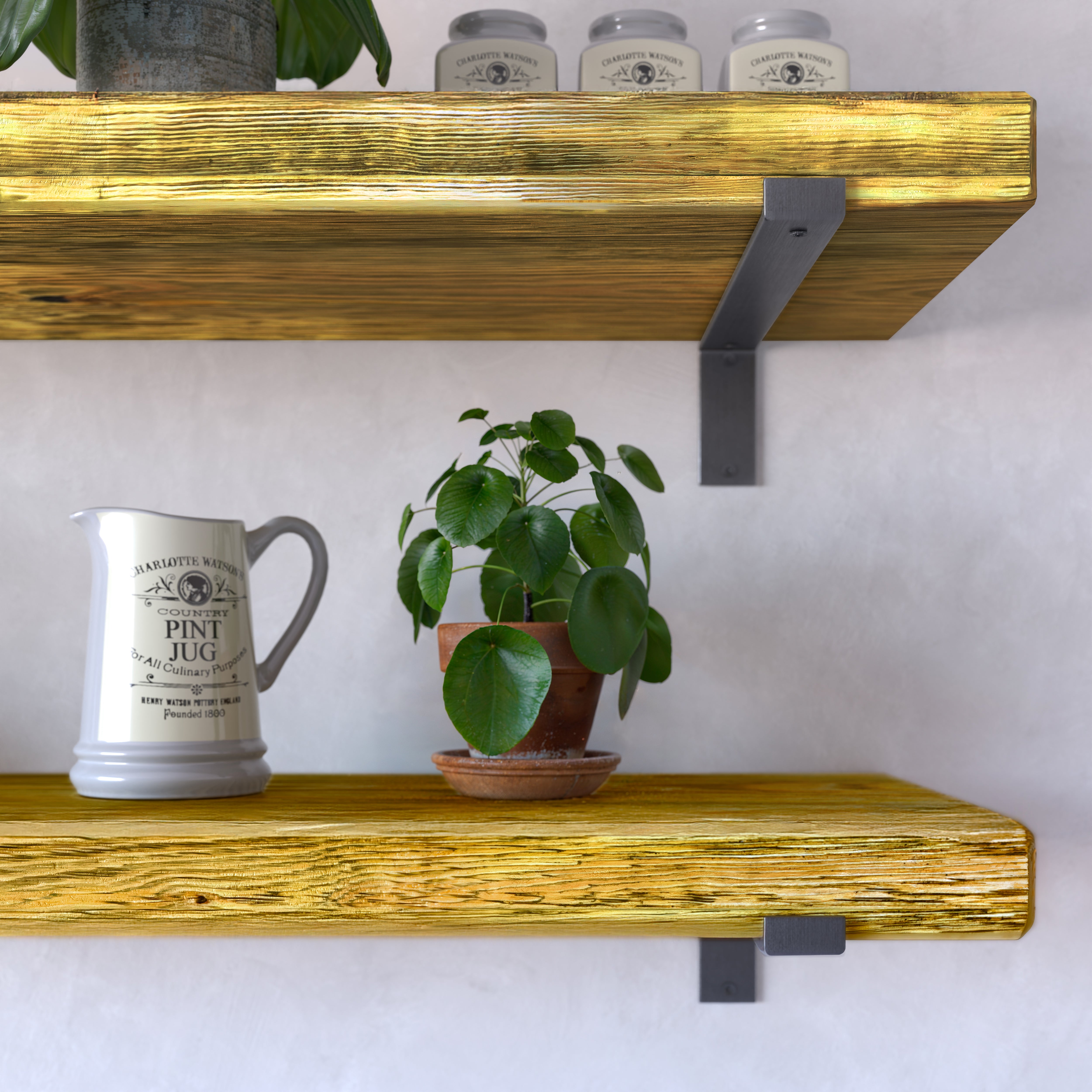 Rustic Shelf With Industrial Lipped Brackets 22cm Depth