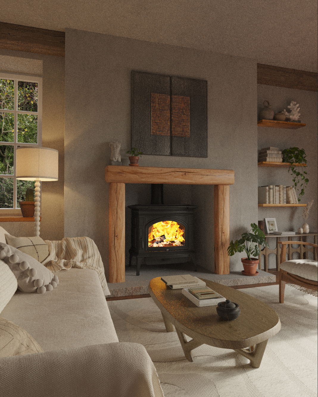 Rustic Style Natural Oak Fireplace Surround